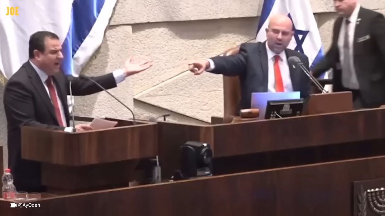 Left coalition leader Ayman Odeh recounted a harrowing experience of a Palestinian father on the floor of the Knesset on Monday, and was dragged from the podium after levelling criticism against Benjamin Netanyahu's attacks on Gaza.