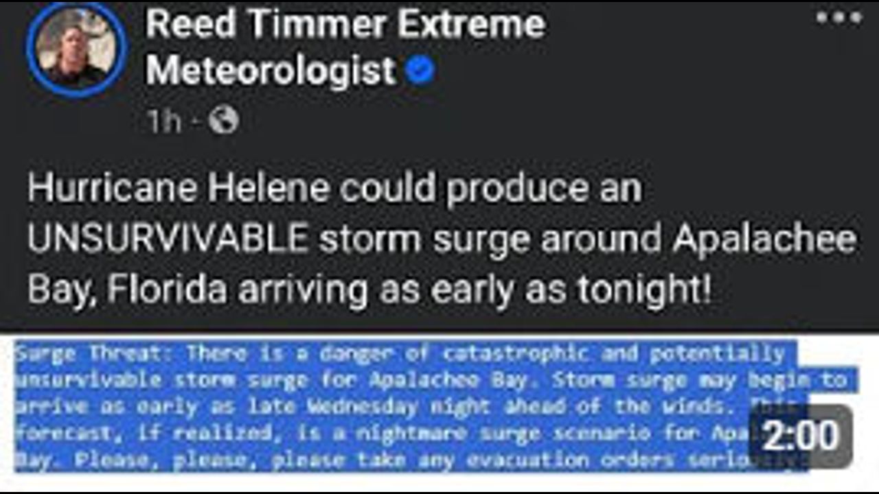 Hurricane Helene could produce an UNSURVIVABLE storm surge around Apalachee Bay, Florida arriving as early as tonight!