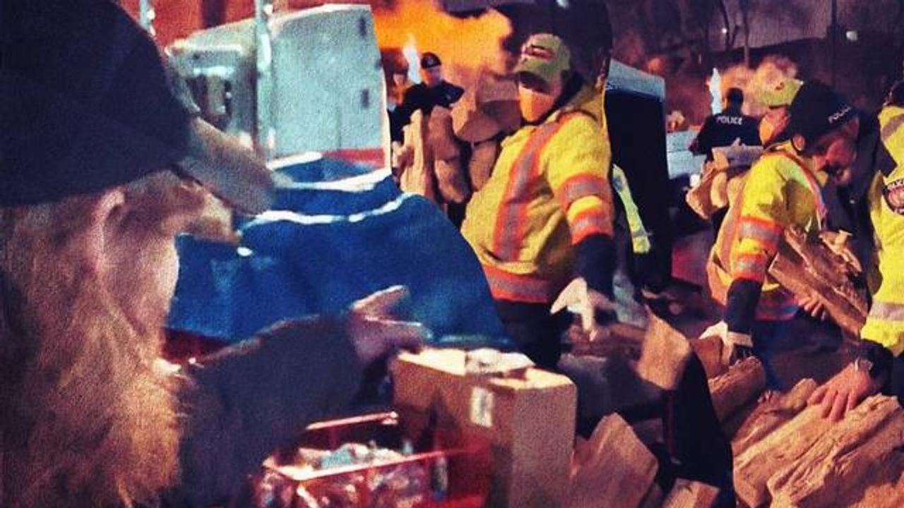 Police Steal Fire And Cooking Wood From Freedom Convoy