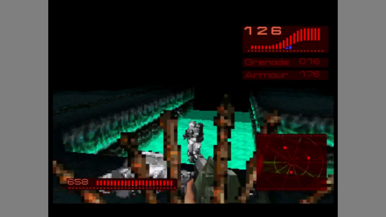 Alien Trilogy is first person shooter based on the (at this time) three Alien movies. It was developed by British company Probe Entertainment and published by Acclaim. The game came also out for PC and for the Playstation. Versions for the 32X and the N64 were also planned, but got cancelled. You play the heroine of the saga, Alan Ripley, and start off at the colony from the film Aliens. Later levels take place at locations from the other two movies. The levels of the game are missions which come with an objective each, like taking out all enemies or activating power sources. Enemies in the game are taken from the movies, like Facehuggers, infected colonists and the original Alien.