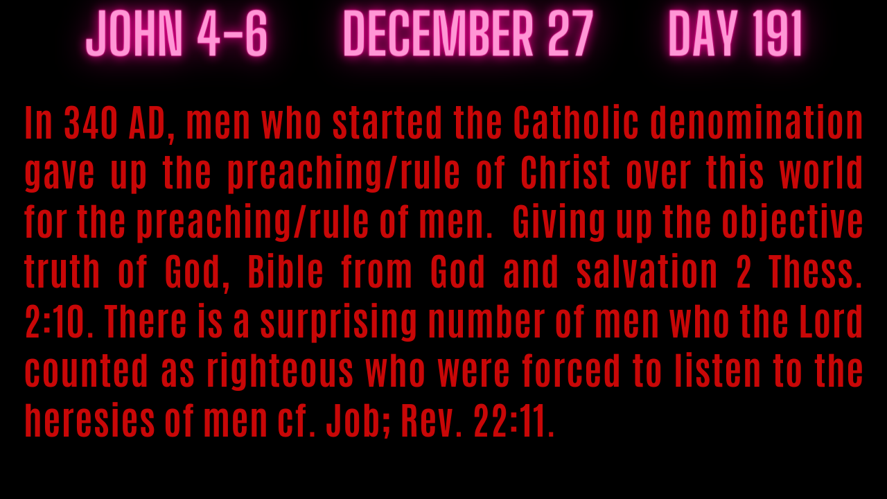 In 340 AD, men who started the Catholic denomination gave up the preaching/rule of Christ over this world for the preaching/rule of men. - giving up the objective truth of God, Bible from God and salvation 2 Thess. 2:10. There is a surprising number of men who the Lord counted as righteous who were forced to listen to the heresies of men cf. Job; Rev. 22:11.