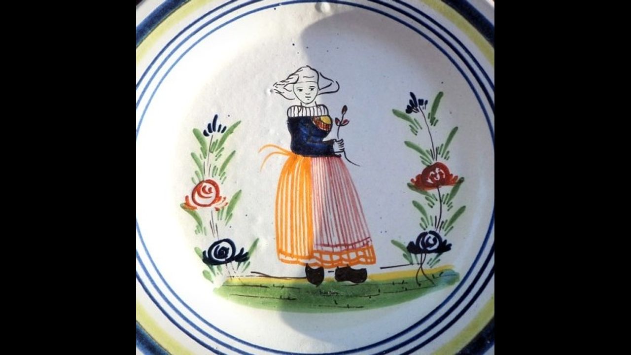 Pottery has been made in the region by master artisans since 1747. located in the Sarthe region of central France (near Le Mans) is also a "pottery town" and can trace its history of pottery production back to the 3rd Century A.D. Many pieces made at a pottery run by Léon Pouplard. The pottery's name was Plat d'Etain; Pouplard took over a family pottery in 1890 and soon after became "inspired" by Quimper's success.