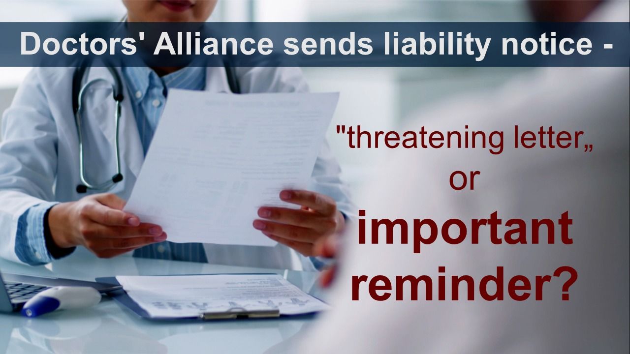 Doctors' Alliance sends liability notice - "threatening letter" or important reminder?