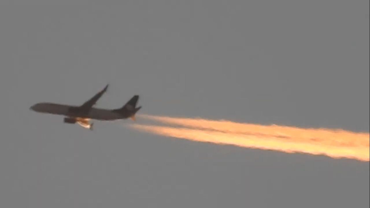 Here's just one of these spewing vehicles painting the sky orange tonight. Look at the speed of these rocket looking vehicles.