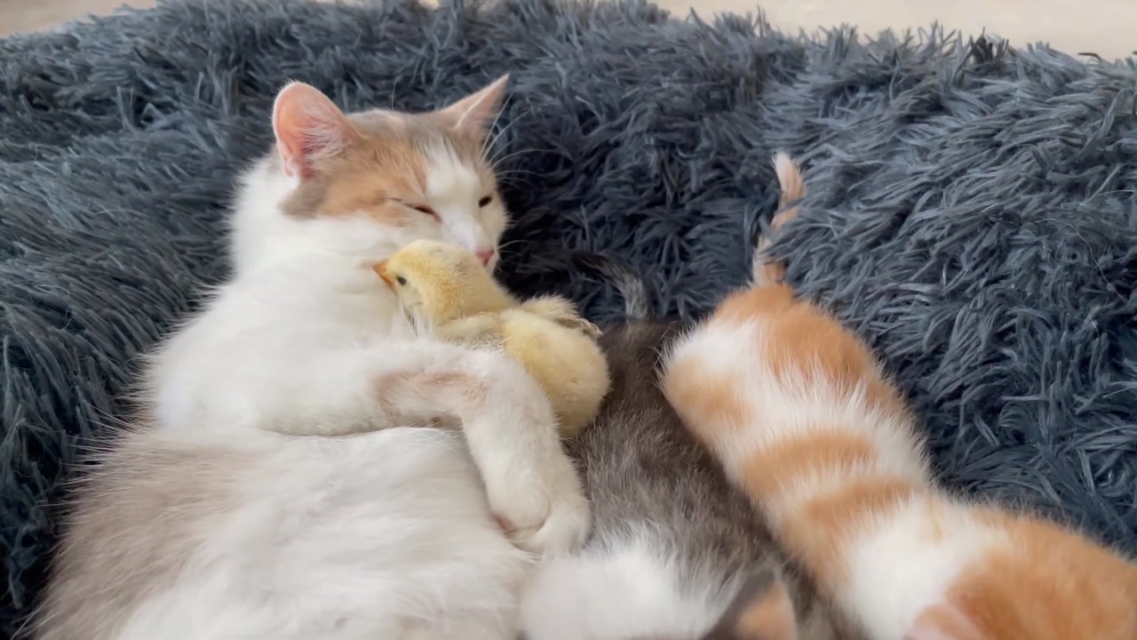 Mom Cat Adopted Baby Chicken as her Kitten!