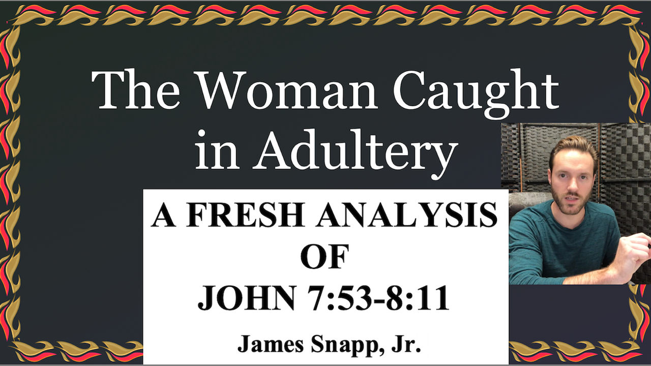 Talking Christianity - Apologetics: John 7:53-8:11. The Pericope Adulterae Debate Review and More: https://youtu.be/Dki5Bz60Zy0