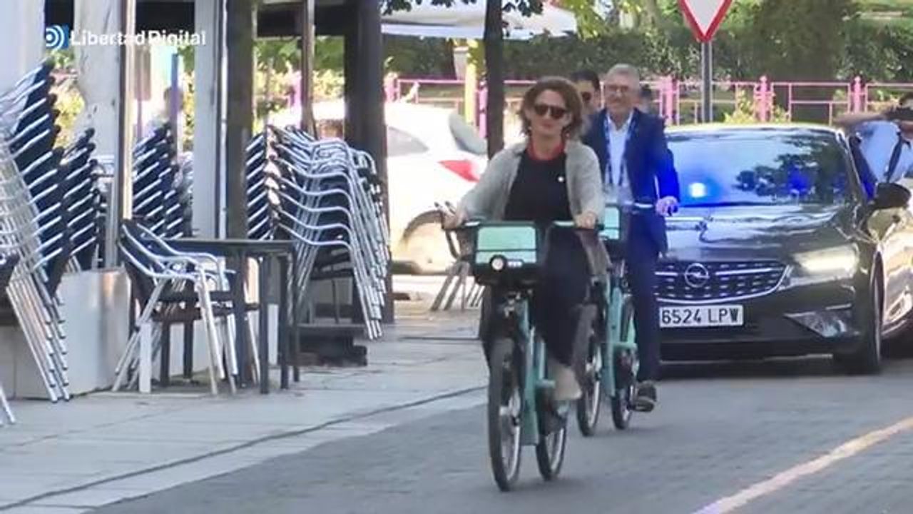 venue she gets off and takes a bicycle, as her two security cars follow