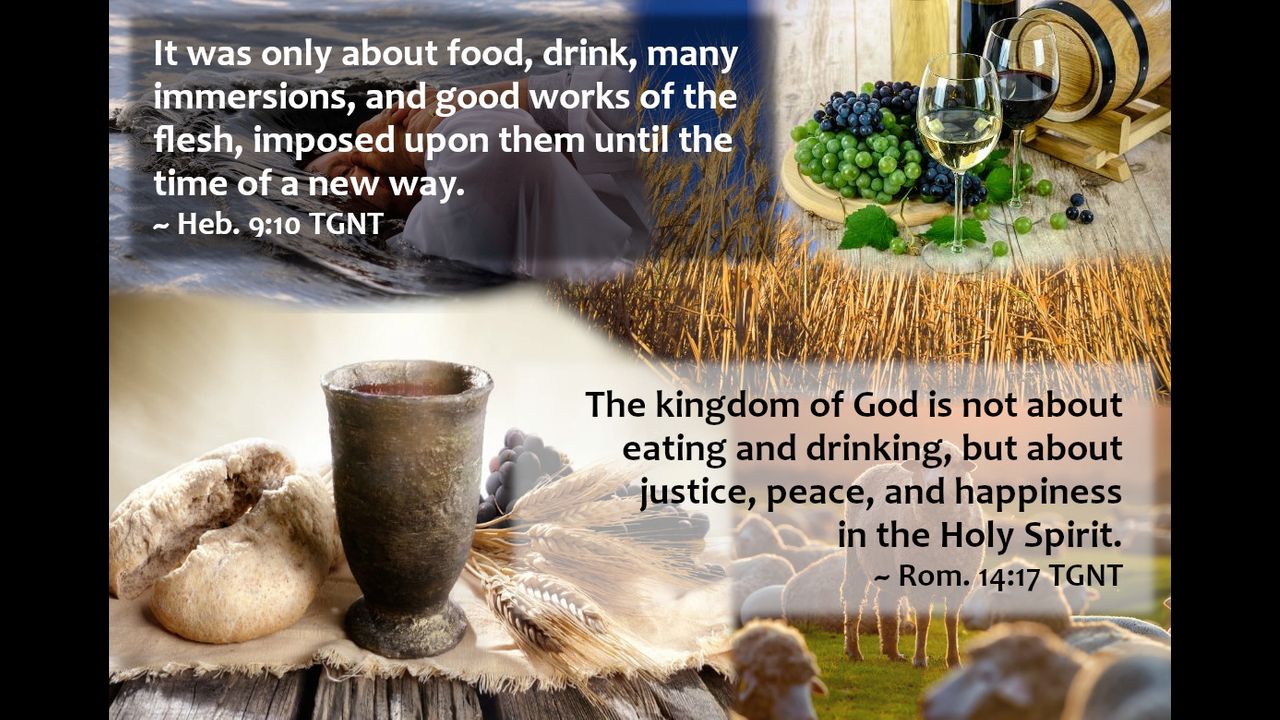 Gen. 14:17-20, Num. 18:24, Deut. 14:22-29, Malachi 3:9-10, Mat. 3:11, 23:23, Acts 2:41, 8:38, 10:48, 11:16, Rom. 6:14, 1 Cor. 10:16, 11:20-34, 16:2,8, 2 Cor. 8:12-15, 9:6-7, Col. 3:17, Heb. 11:29, 1 Peter 3:20-21