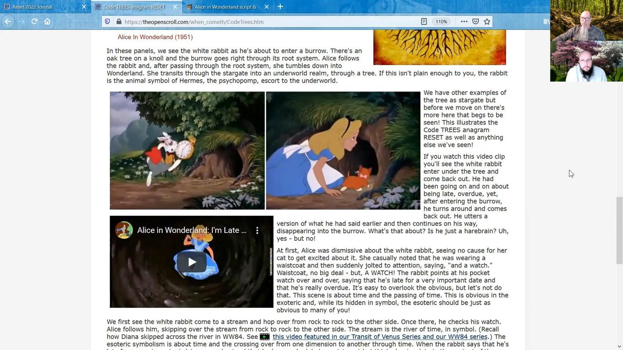 Code TREES anagram RESET and Alice in Wonderland (1951)
