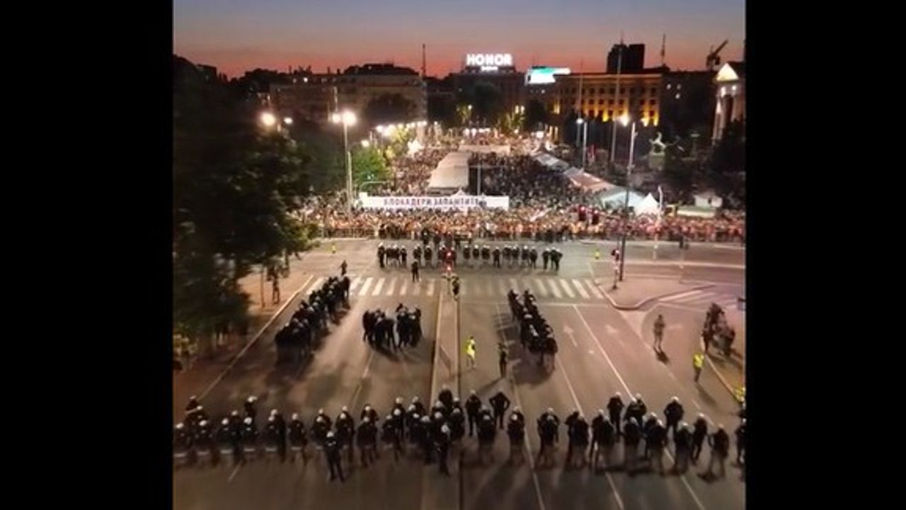 Aerial footage from King Aleksandar Boulevard in Belgrade, earlier this evening.