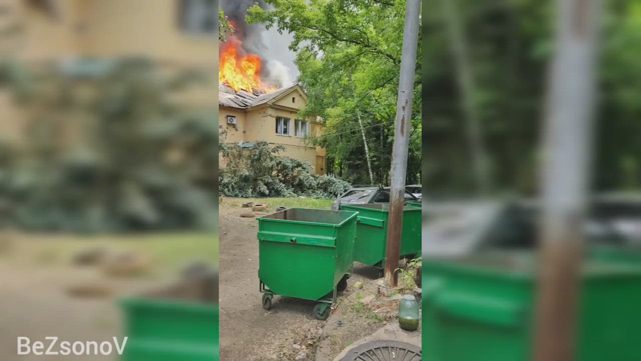 One of the Consequences of Morning Shelling in Donetsk by Ukrainian Militants. Nice House in Flames. - 061722