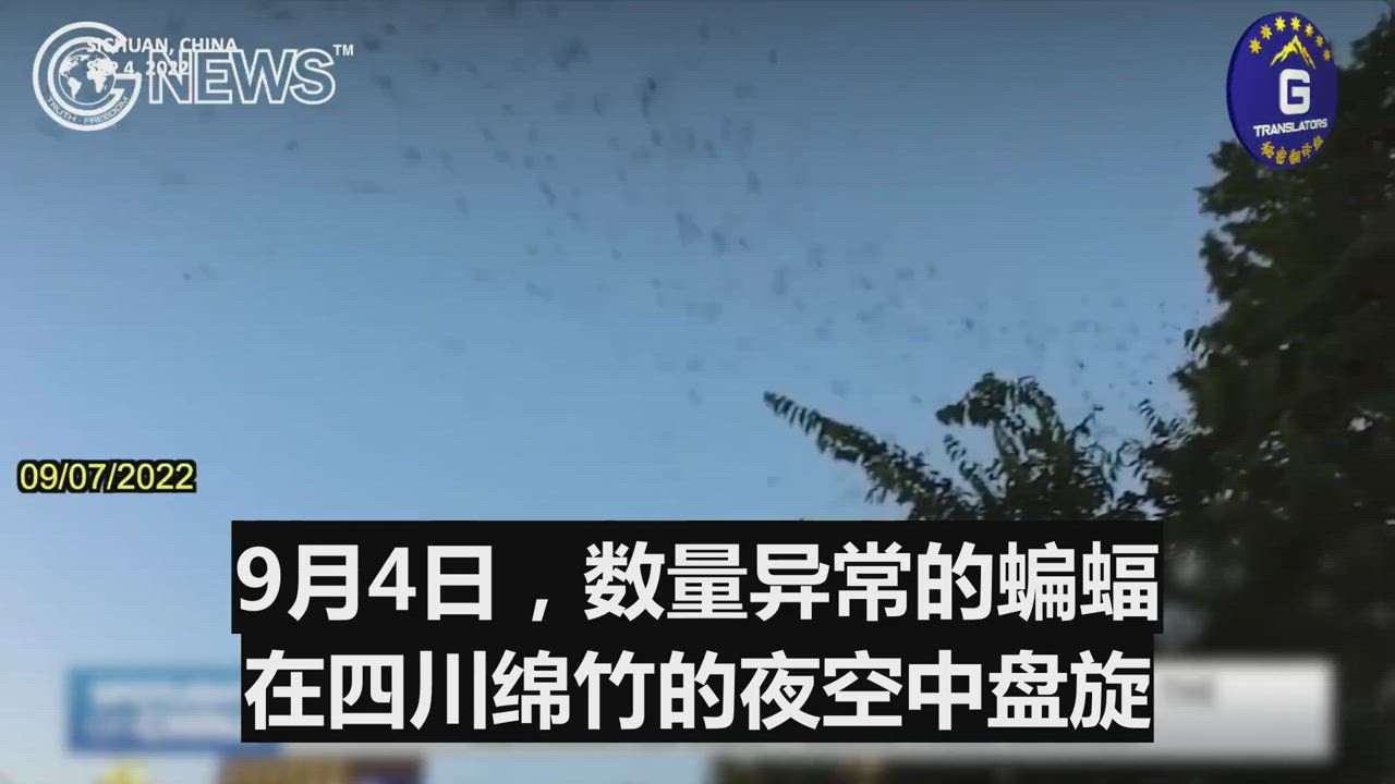 09/07/2022 Spotlight on China: On September 5, a magnitude 6.8 earthquake occurred in Luding,Sichuan the day after seeing an extraordinary number of bats hovered in the night sky of Mianzhu, Sichuan. Residents complained that the government did not put out an early warning