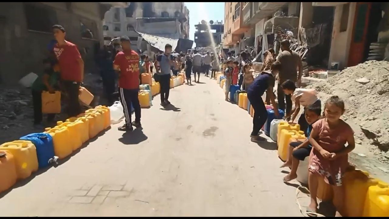 North Gaza Delivering Water Lots of Destruction Everywhere