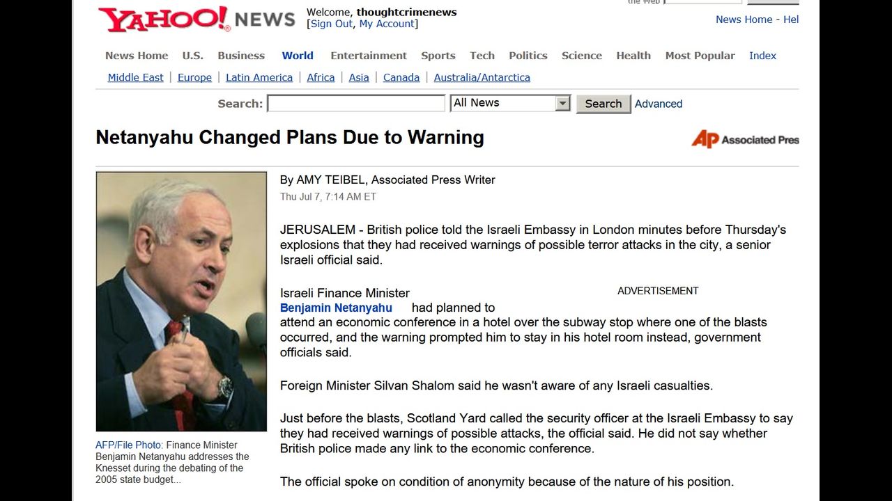 2. Benjamin Netanyahu who was in London that day and Israeli embassy had a warning before the 'surprise attack' bombings according to AP journalist Amy Tiebel and Israeli embassy spokesperson Dan Sheham