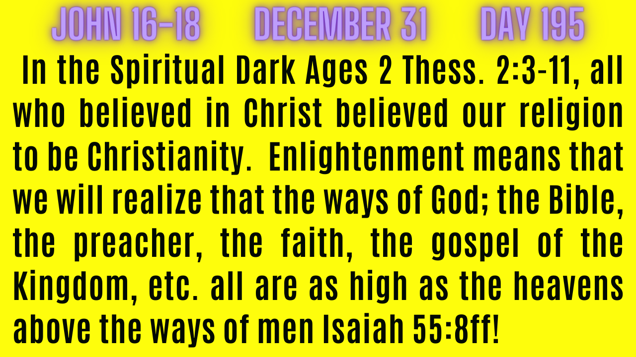 Coming out of the spiritual dark ages means that we will realize that spiritual warfare is between the ways of men and the ways of God, the Bible, faith system, preaching, etc. all of God is exceedingly abundantly greater than we ever imagined Eph. 3:20. The way's of God are as High as the heavens above the ways of men Isaiah 55:8-9!
