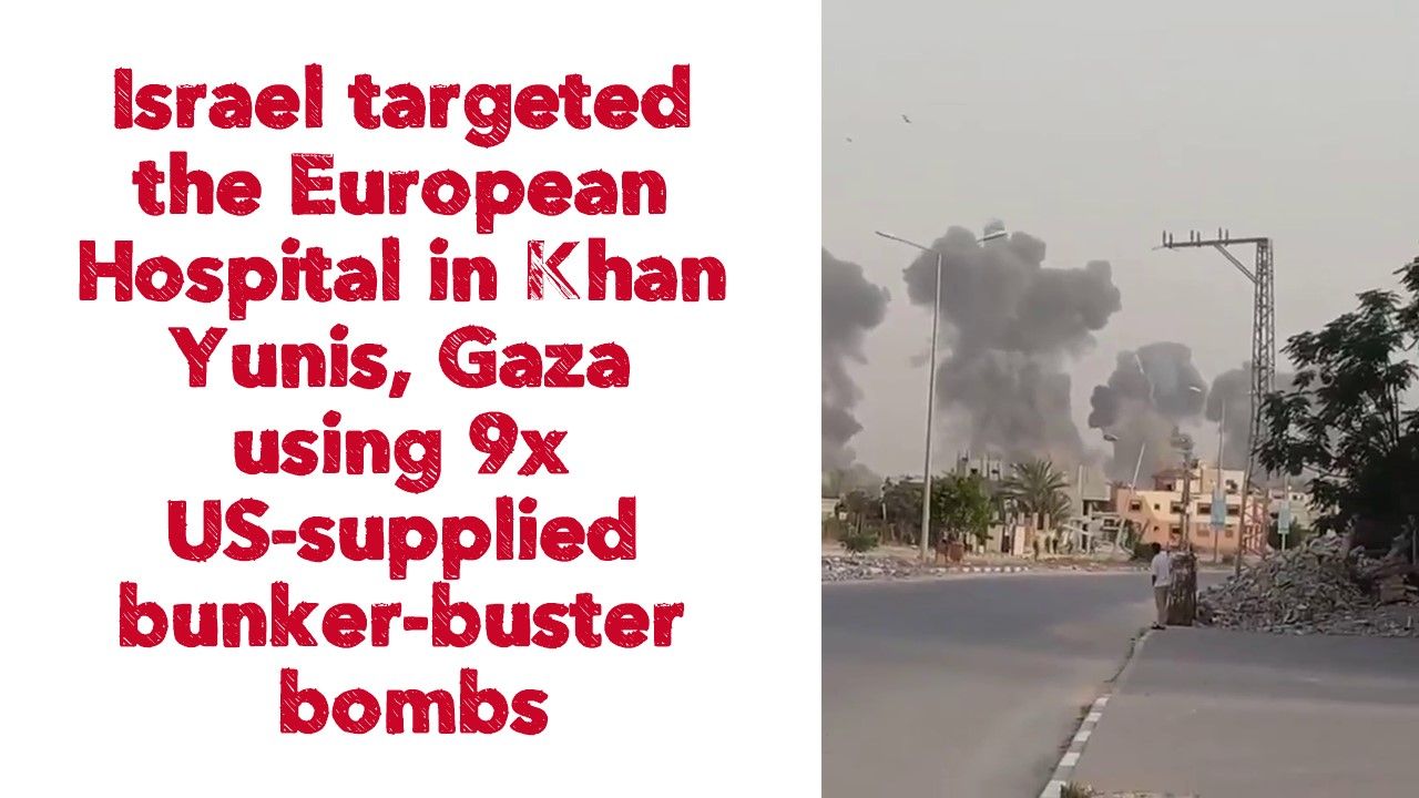 Israel targeted the European Hospital in Khan Yunis, Gaza using 9 US-supplied bunker-buster bombs.