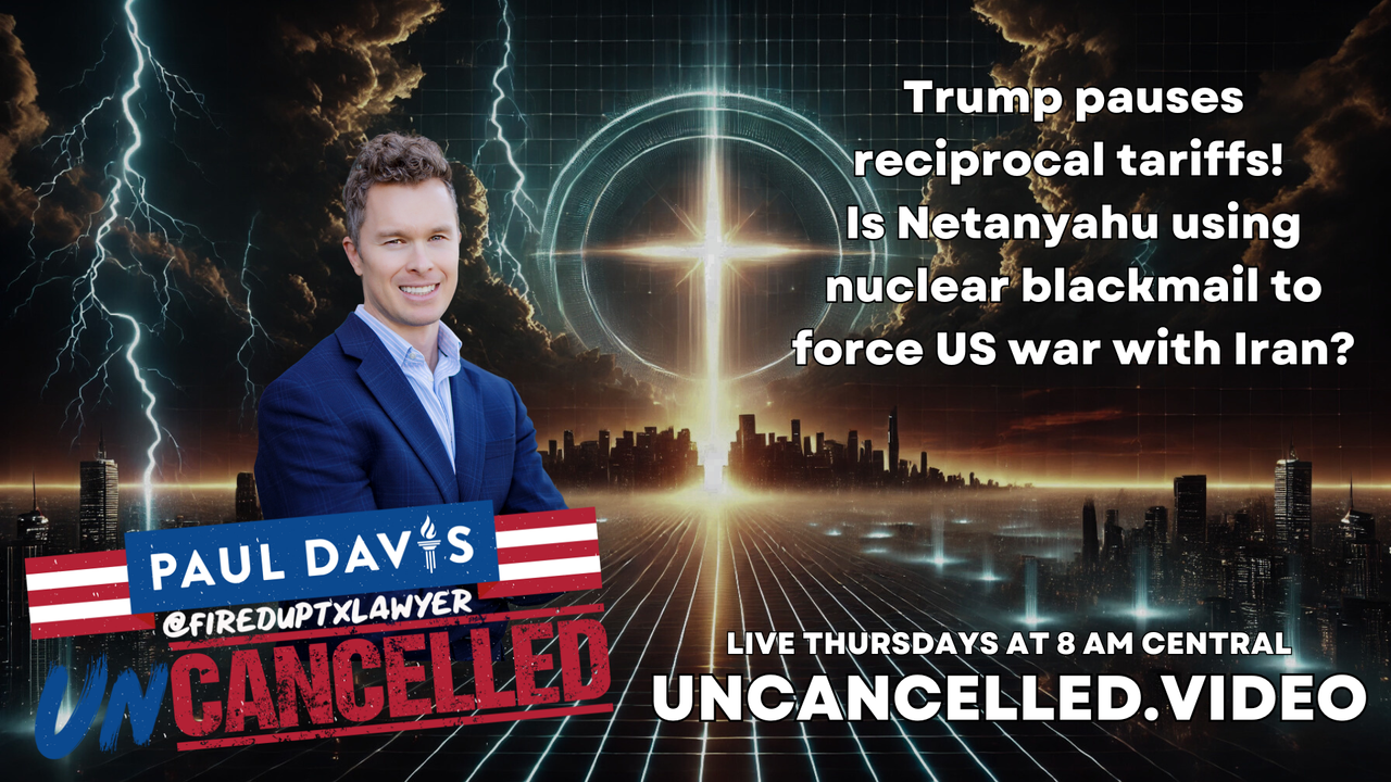 Stock market surges after Trump issues 90-day pause on reciprocal tariffs, keeps 10% across-the-board and China reciprocals after China retaliates | iPhone panic buying after news price could reach over $2,000--is this how they will force brain chip implant to replace smart phone? | Netanyahu signals Israel would attack Iran without US ahead of Trump meeting--is this nuclear blackmail? | Trump demands Iran follow the "Libya Plan" for nuclear disarmament | RFK Jr. promotes MMR vaccine on X | Austin Metcalf story bitterly divides public | Opposition grows to UN IMO carbon tax on international shipping | Israel caught lying again after gunning down paramedics in Gaza