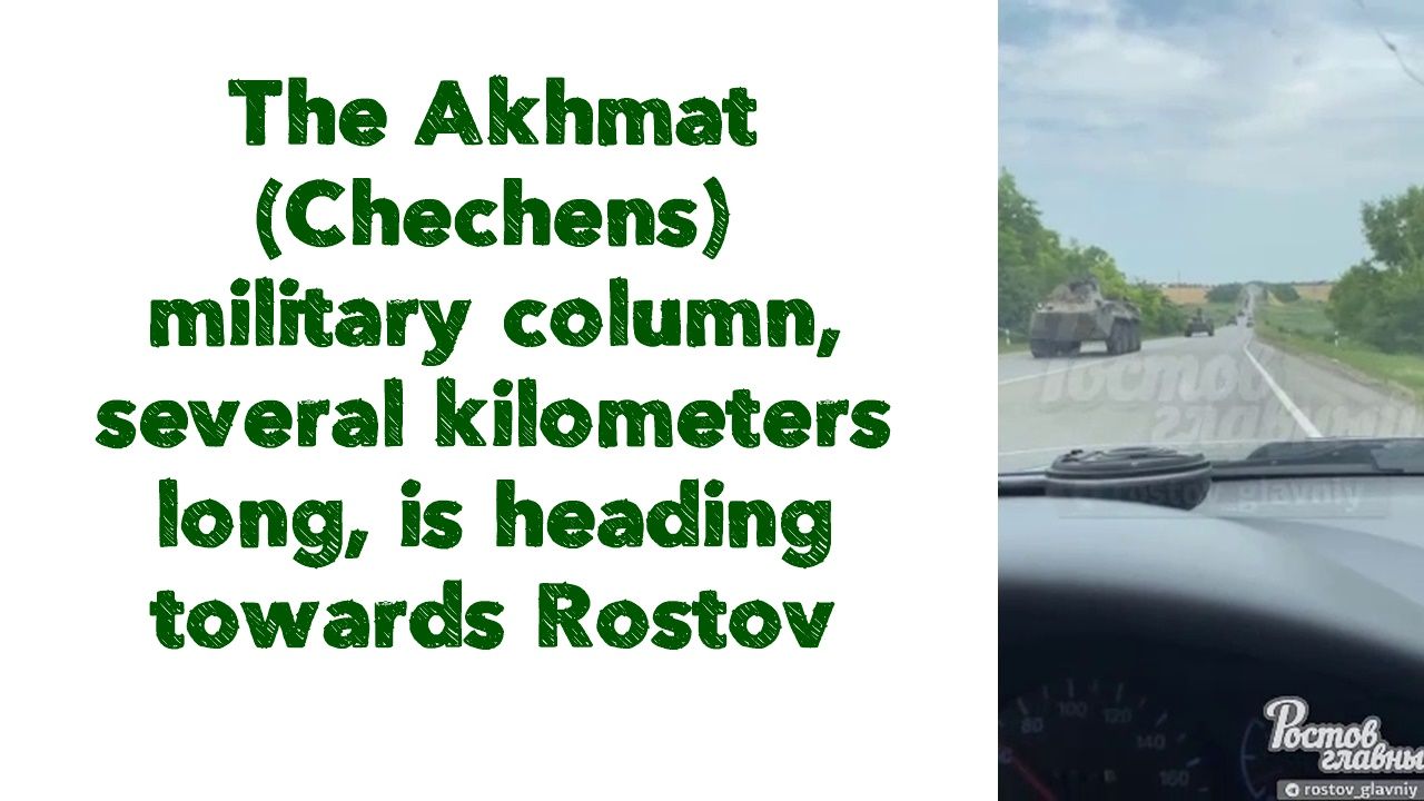 🇷🇺⚡️ The Akhmat column, several kilometers long, is heading towards RostovChechen troops.