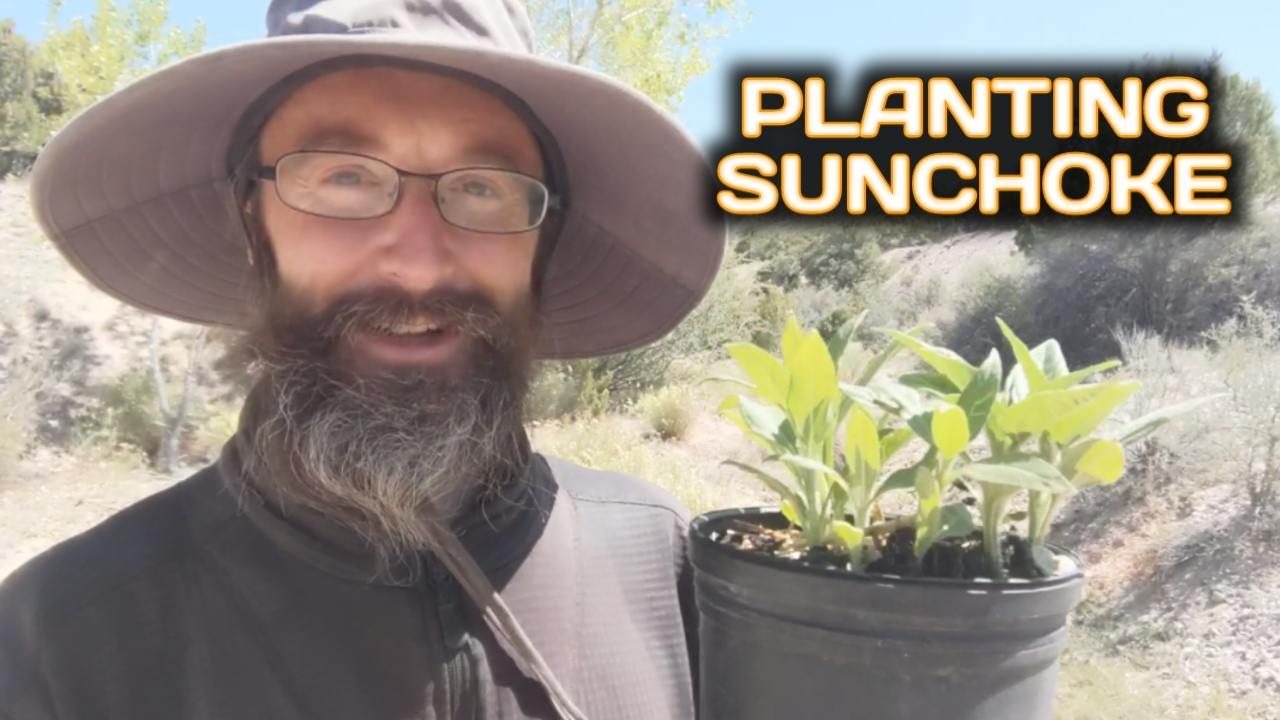I plant one of the Sunchokes, also known as Jerusalem Artichoke, a viewer gifted me at the spring in the desert.