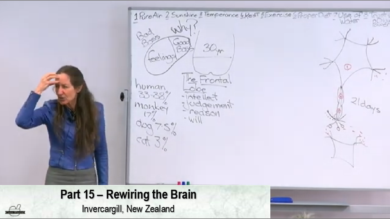 Barbara O'Neill is an author, educator, qualified naturopath and nutritionist. In this lecture - the fifteenth in a series on the body's ability to heal itself - she explains how we can rewire our brains leading to better health. These lectures were recorded in Invercargill, New Zealand.