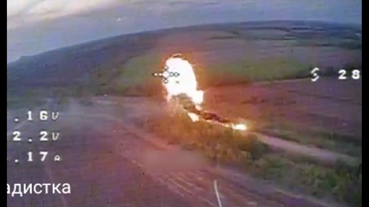 Beautiful destruction of the German Marder infantry fighting vehicle by our FPV drone, followed by fiery detonation. Apparently the vehicle was transporting ammunition. Video found, April 26.