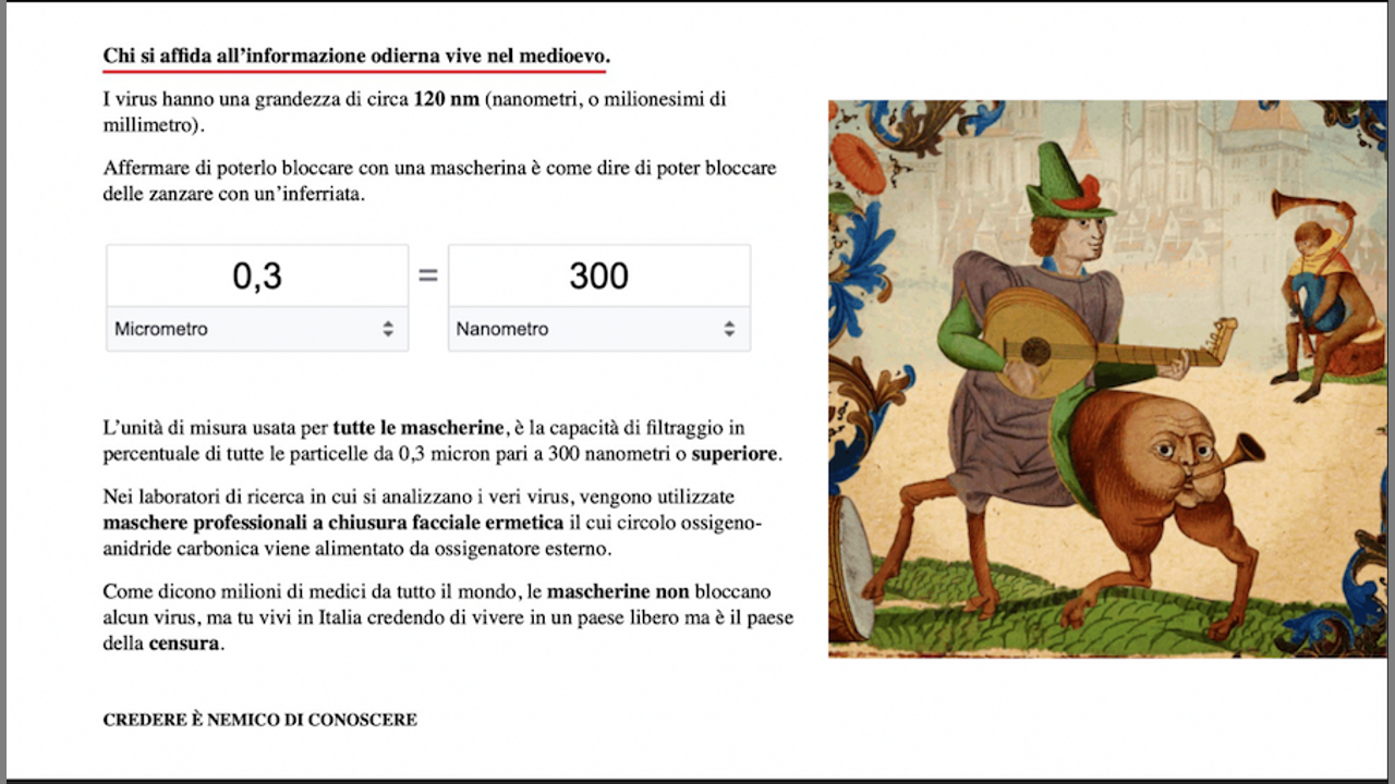 Come dicono milioni di medici da tutto il mondo, le mascherine non bloccano alcun virus, ma tu vivi in Italia credendo di vivere in un paese libero ma è il paese della censura.