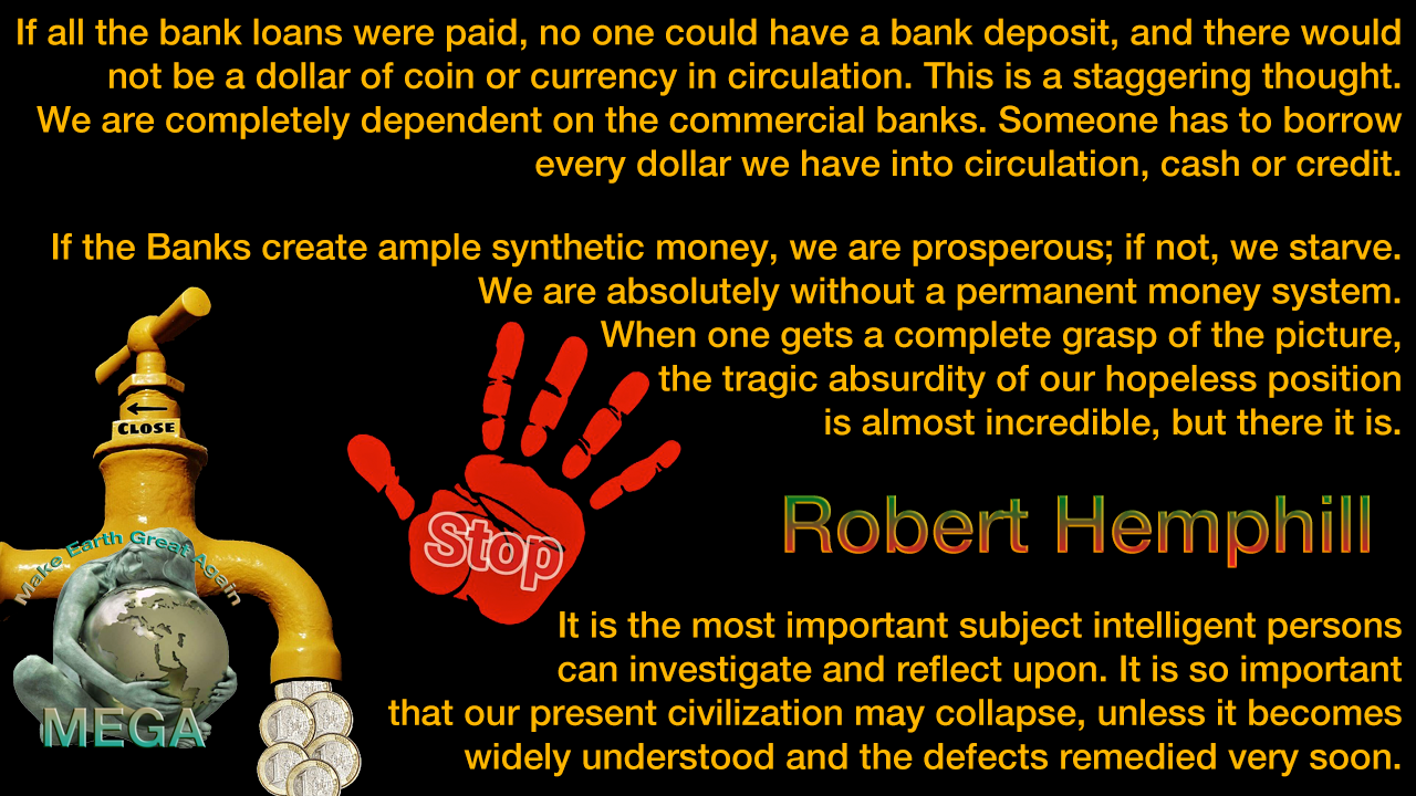 If the Banks create ample synthetic money, we are prosperous; if not, we starve. We are absolutely without a permanent money system.