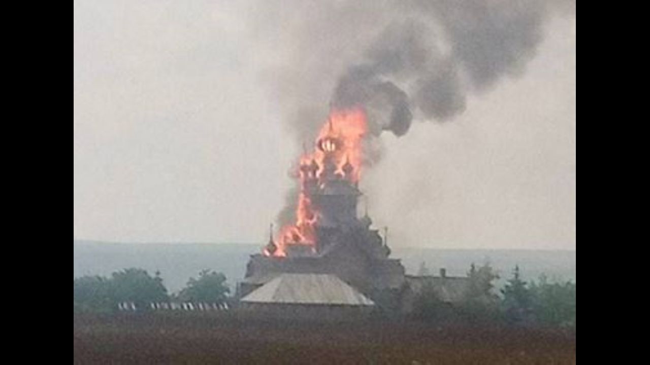 This was the largest wooden church in Ukraine is burning - the wooden All Saints Skete of the Svyatogorsk Lavra of the Moscow Patriarchate, opened in the 16th century was attacked by Ukrainian militants