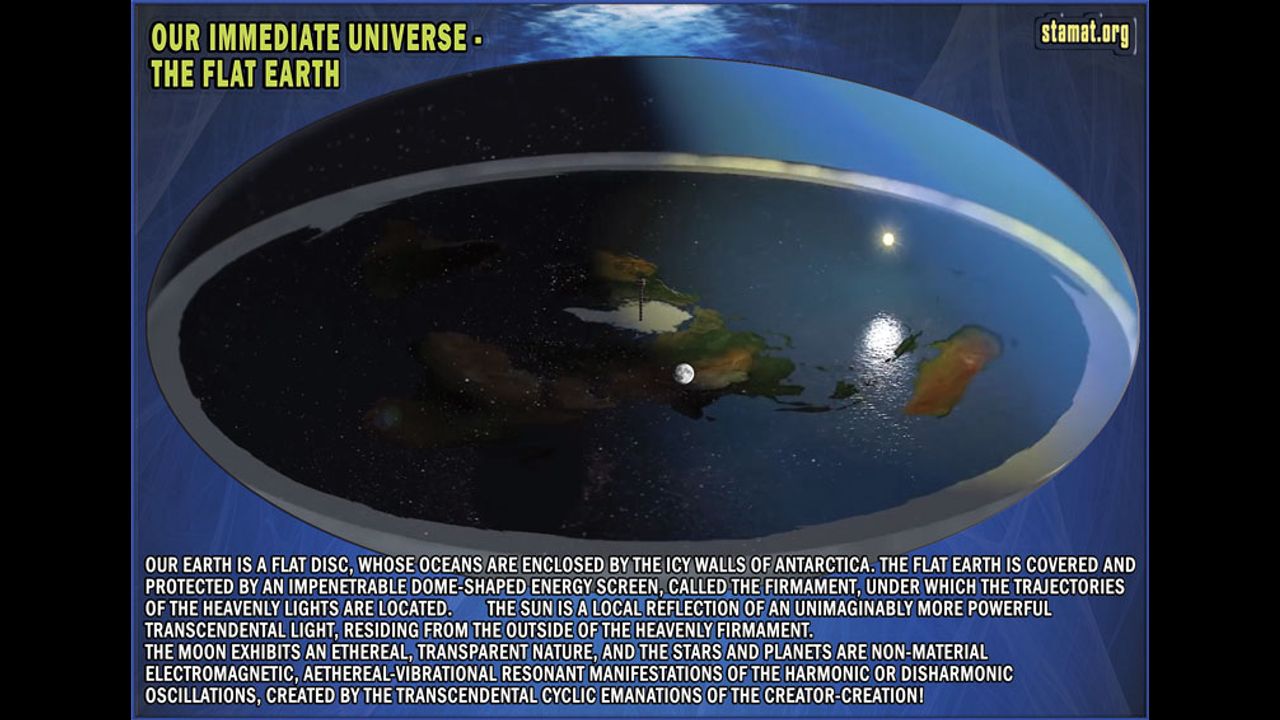 Нашата Земя представлява плосък диск, чийто океани са обградени от Ледената стена на Антарктида. Плоската Земя е покрита и защитена от куполоподобен непробиваем енергиен екран, наречен Небесната Твърд, под който се намират траекториите на Небесните Светила. Слънцето се явява локално отражение на едно невъобразимо по-мощно Трансцендентно Светило, пребиваващо отвъд Небесната Твърд. Луната има ефирно полу-прозрачно естество, а звездите и планетите са невеществени електро-магнитни манифестации на етерно-вибрационните резонансни или хармонични трептения, създавани от Трансценденталните циклични еманации на Творецът-Творение!