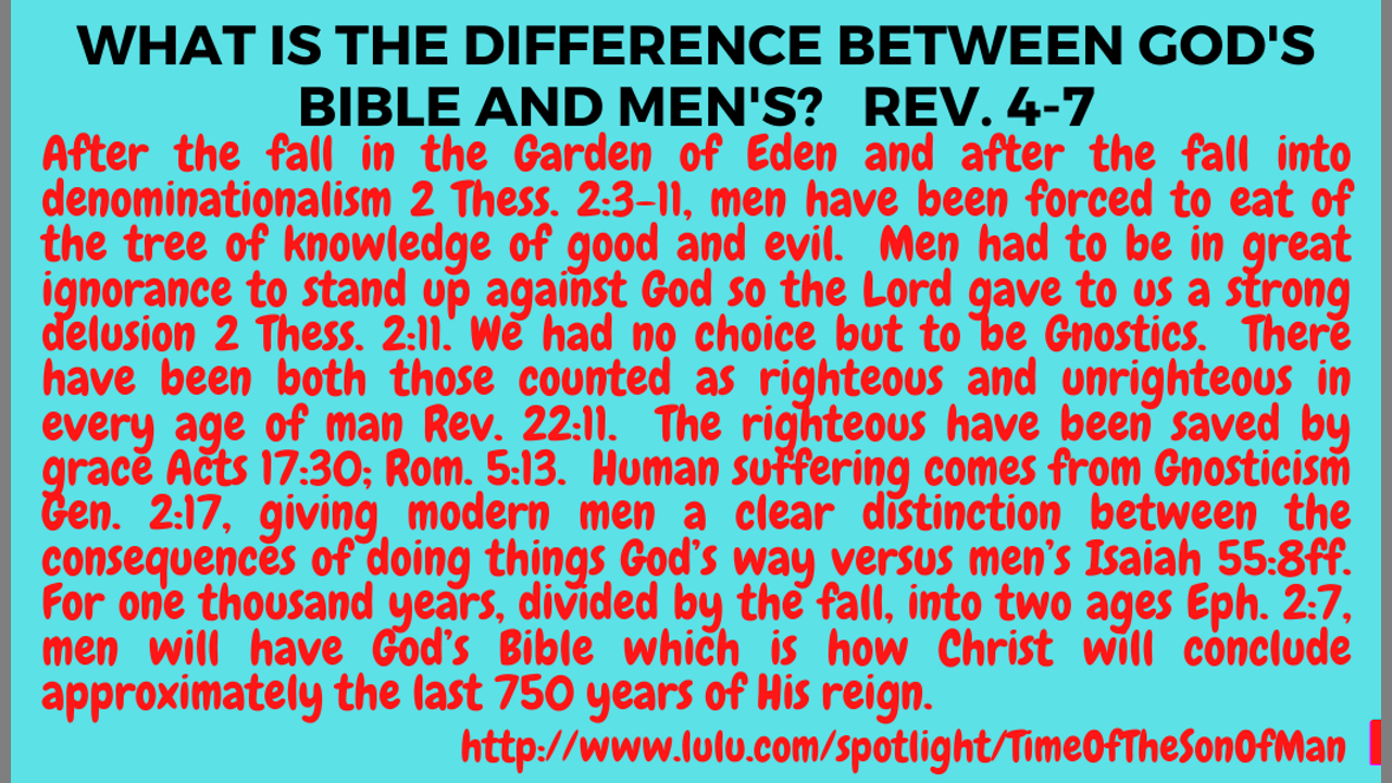 Rev. 6. THE DIFFERENCES IN THE BIBLE FROM GOD (THE WISDOM FROM ABOVE) AND THE BIBLES OF MEN (WISDOM FROM BELOW) JAMES 3:15