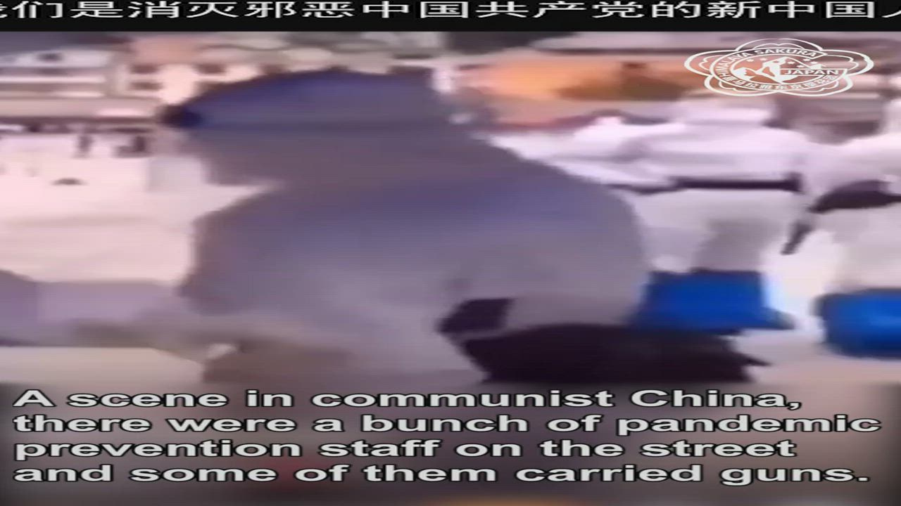A scene in communist China, there were a bunch of pandemic prevention staff on the street and some of them carried guns