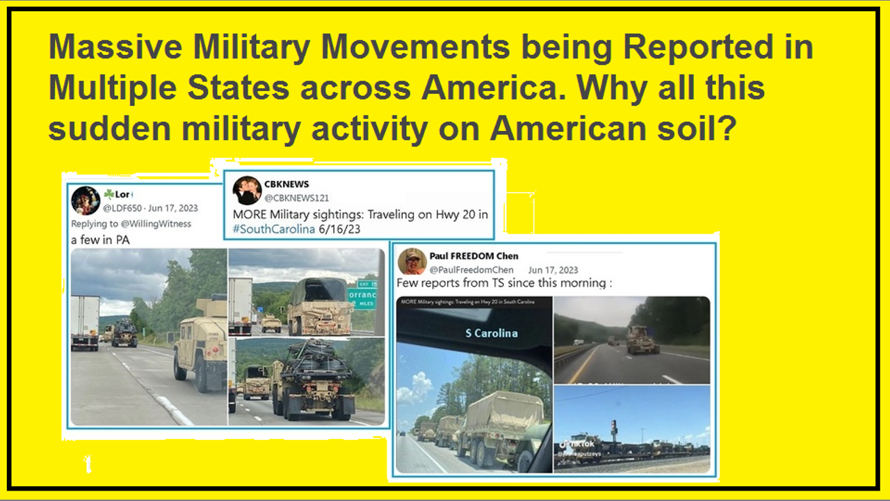 Do not be concerned. Another explanation for the military vehicles being deployed on American Soil has a non war explanation. https://poleshift.ning.com/forum/topics/zetatalk-chat-for-june-30-2023?id=3863141%3ATopic%3A1158948&page=3#comments