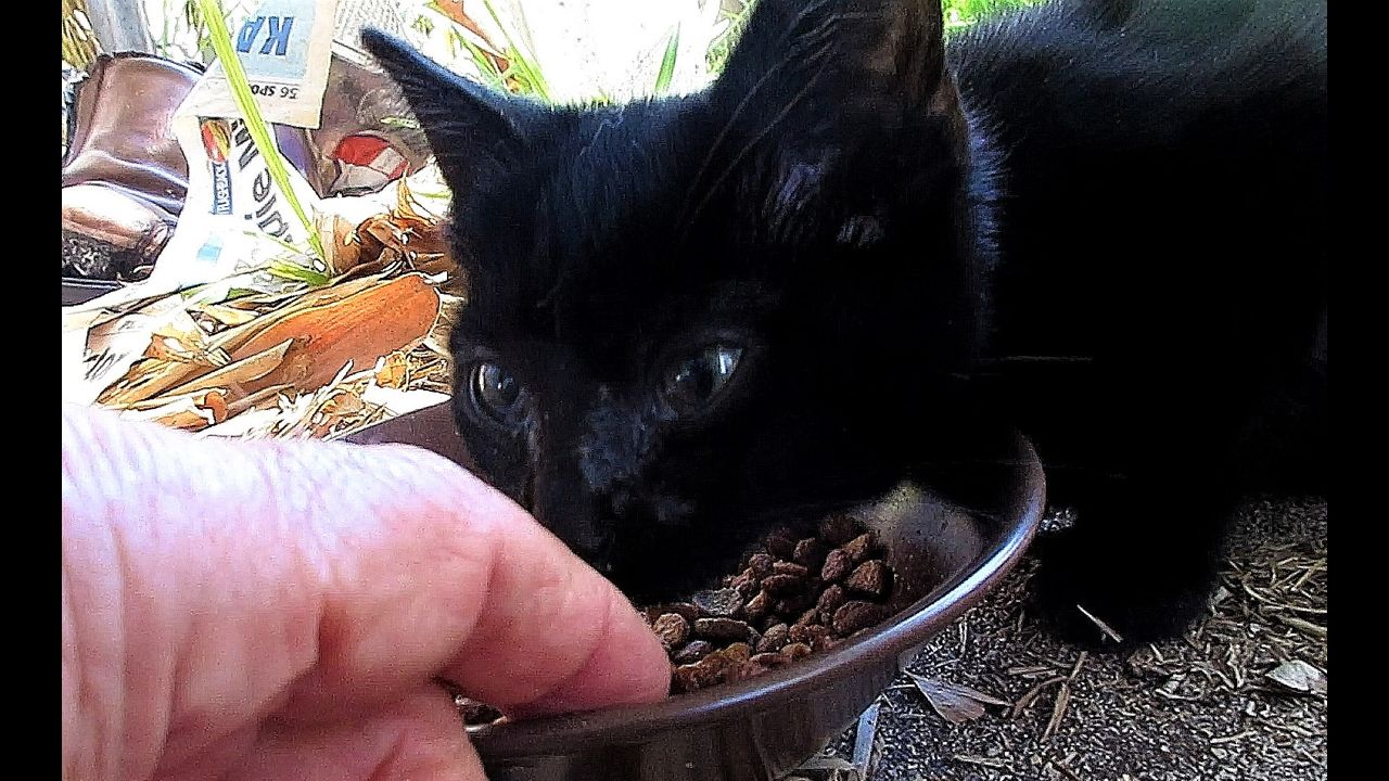 When I spotted two of the latest litter of three kittens sunning themselves at the back glass door, I decided to put food there, in the hope that over the next few weeks they would become tame enough for me to touch, handle, and pick up, with a view to taking them to a cat shelter for rehousing. My impediment to date has been severe time stress, while being unhappy with the suffering they must have had, at least intermittently, despite having their mother with them.