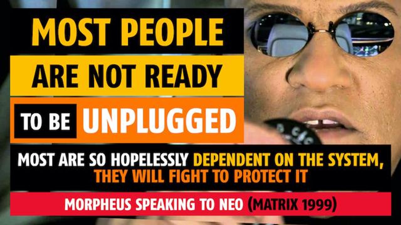 "You have to understand, most of these people are not ready to be unplugged. And many of them are so inured, so hopelessly dependent on the system, that they will fight to protect it."