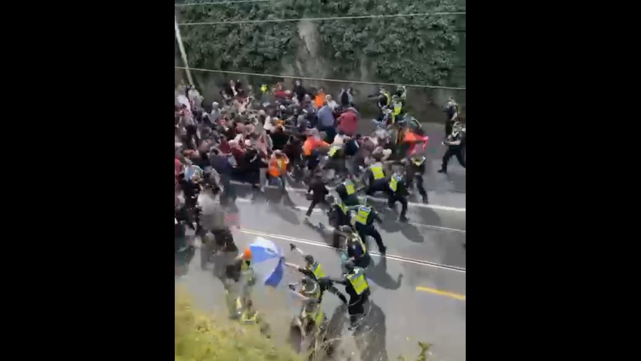 In this clip, protesters fed up with not being able to exercise their right to freedom and peaceful assembly break police lines in inner city Melbourne.
