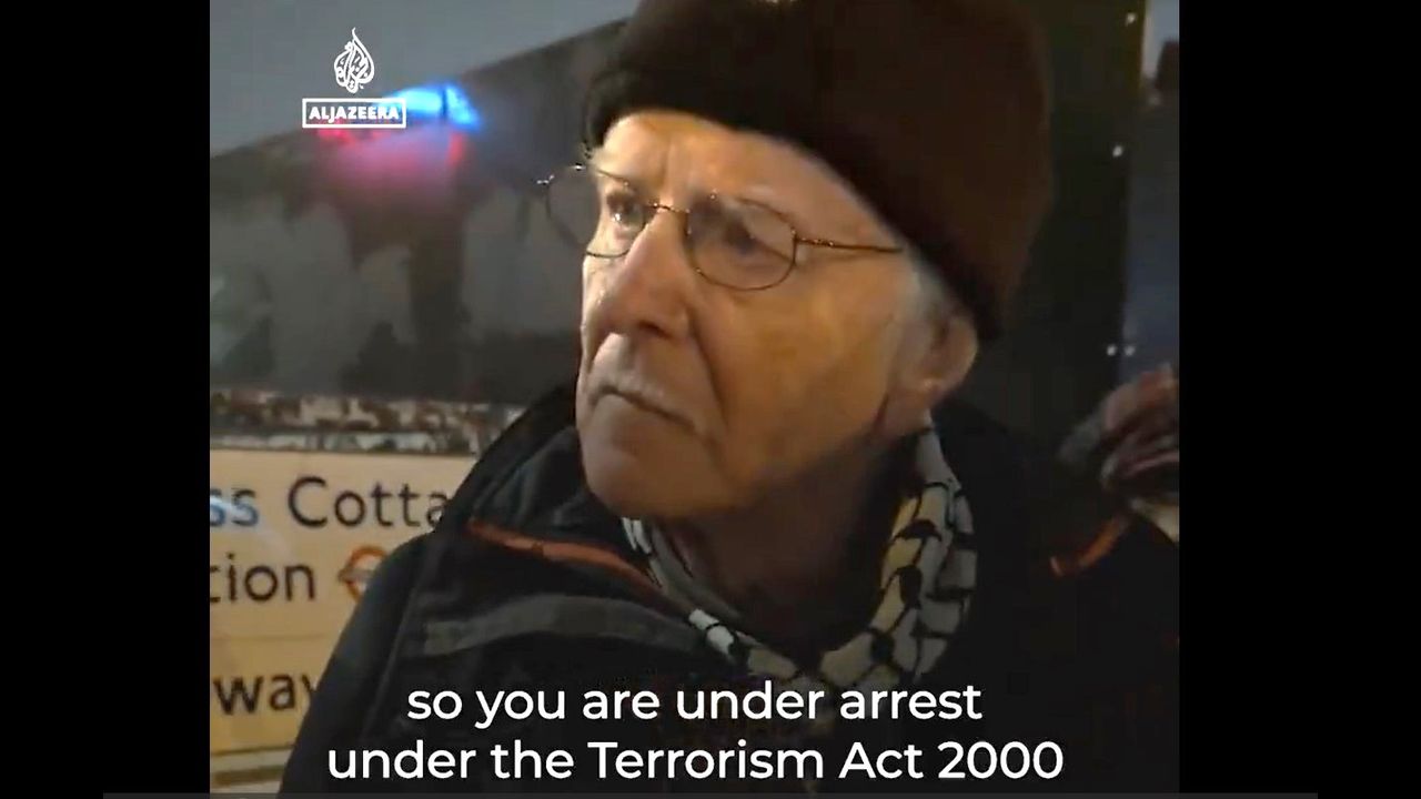 "Retired Jewish professor Haim Bresheeth, a child of Holocaust survivors and founder of the Jewish Network for Palestine, was arrested under a UK anti-terrorism law after speaking at a recent Palestine solidarity protest in London."