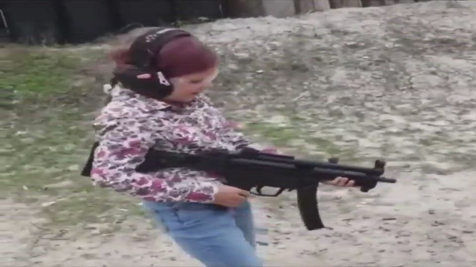 Young Girl Firing An Assault Rifle