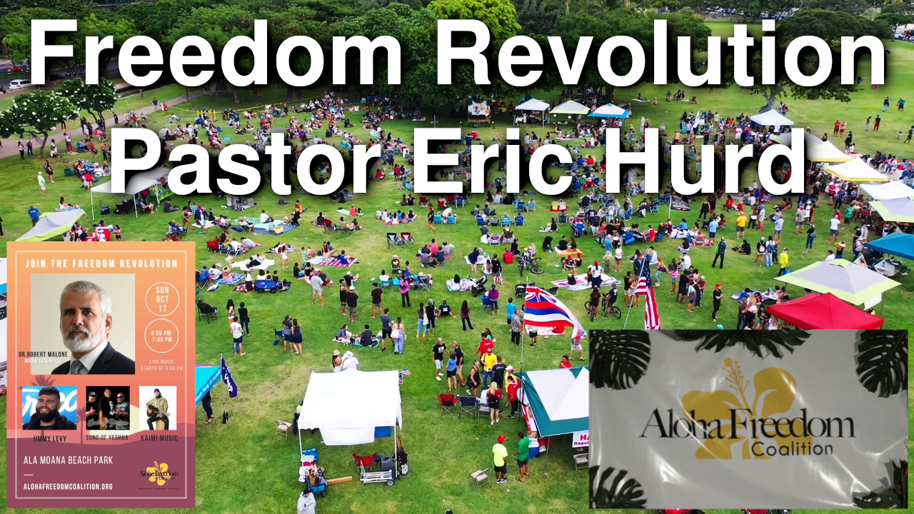 On October 17, 2021, about two thousand liberty loving people assembled at Ala Moana Beach Park in Honolulu, Hawaii, to celebrate freedom and protest medical tyranny, vaccine mandates and segregation. Several anointed speakers and entertainers graced the stage. Pastor Eric Hurd leads everyone in a powerful prayer, asking God for assistance in this spiritual battle and declaring before heaven and earth that Jesus Christ is Lord.