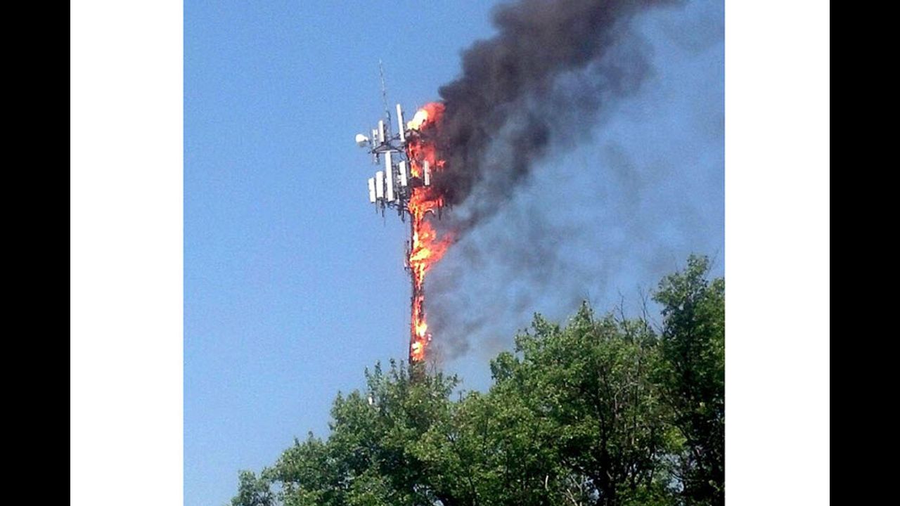 A number of cellphone towers have been set on fire in the past week in Quebec. On Monday, two were on fire in Prévost, north of Montreal. (Simon-Marc Charron/CBC)