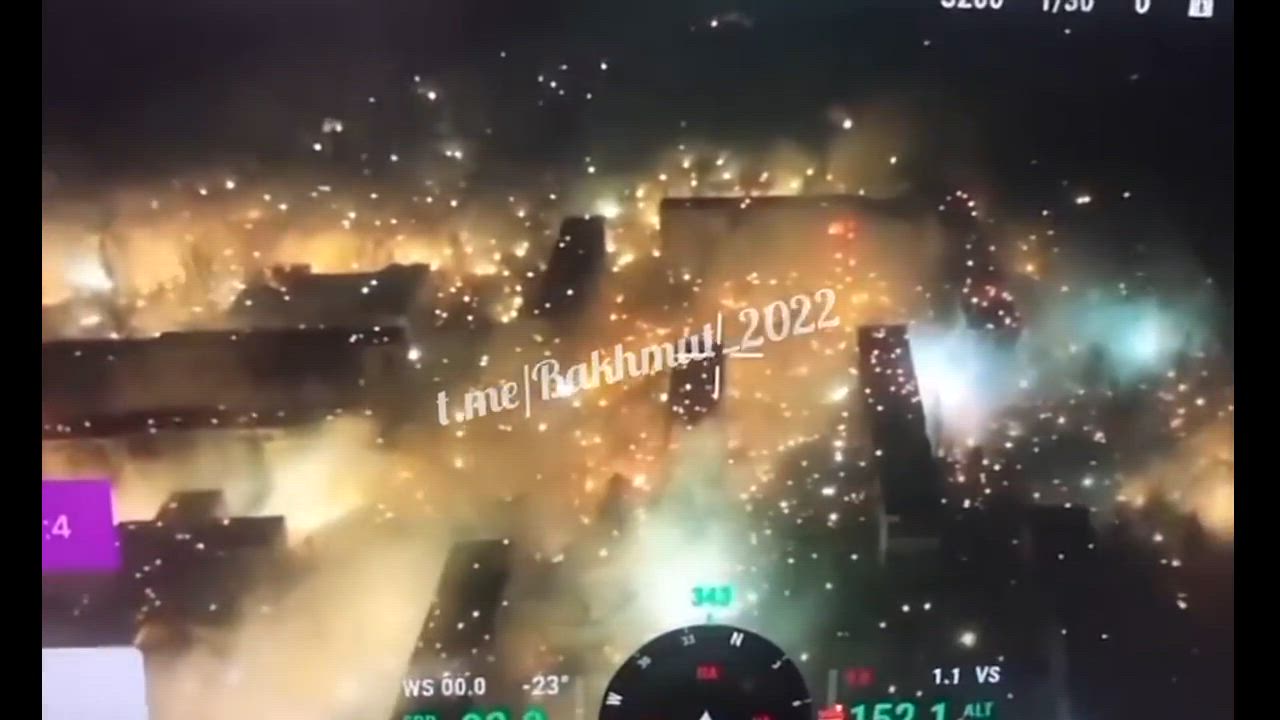 Strike by the Wagner Group using 9M22S incendiary rockets for the BM-21 Grad MLRS in the last quarter of the city where the Ukrainian Armed Forces remained