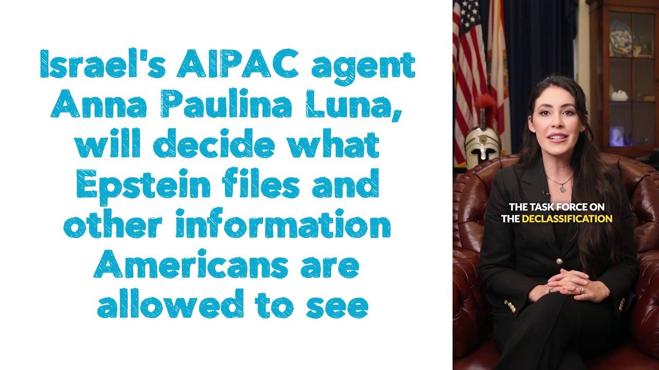 Israel's AIPAC agent Anna Paulina Luna, will decide what Epstein files and other information Americans are allowed to see.