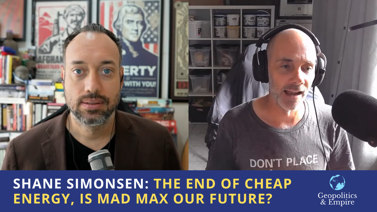 Shane Simonsen discusses the energy crisis and how industrialization was built on the resource base of cheap coal and oil whose quality and quantity is depleting which will affect the complexity of modern society and exacerbate economic and political issues. The elites are dealing with a changing resource base they're struggling to manage and they have a lot less power than we imagine. The real power lays with global multinational corporations who have co-opted nations and political parties. The loss of modern conveniences should see us move back to a more community-oriented setting. We're headed into an era of techno-authoritarianism but at some point that technology will fail. The real trouble is when elites start turning on each other. The future of warfare and society could be biotechnological.