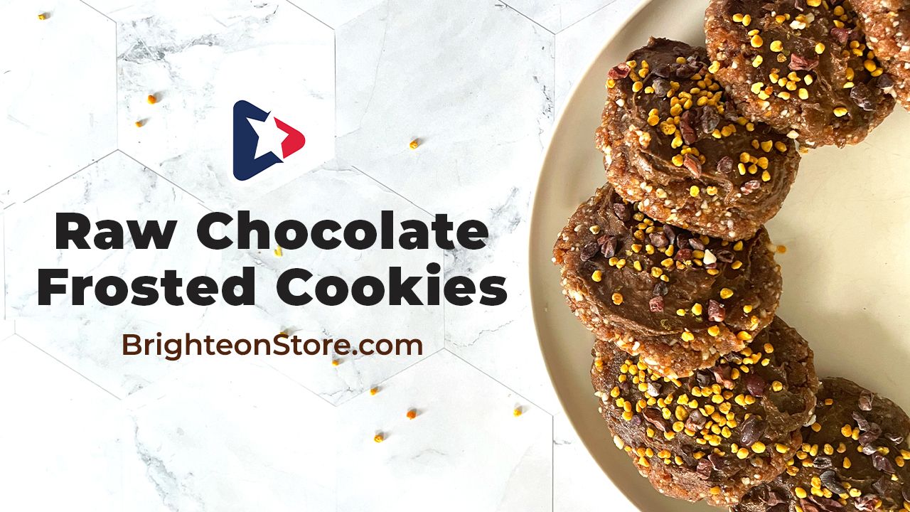 2. Frost the cookies and sprinkle them with bee pollen, cacao nibs and Himalayan salt.