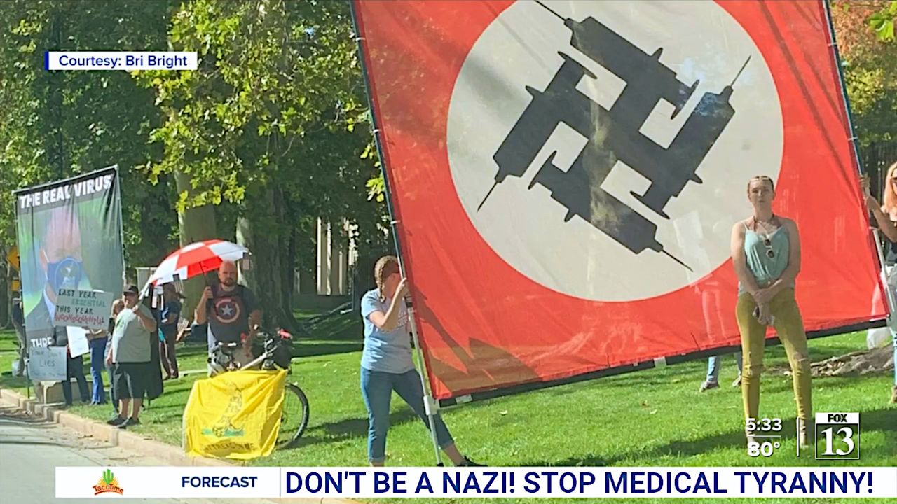 Condemnation over use of swastika during Salt Lake City vaccine protest - YouTube