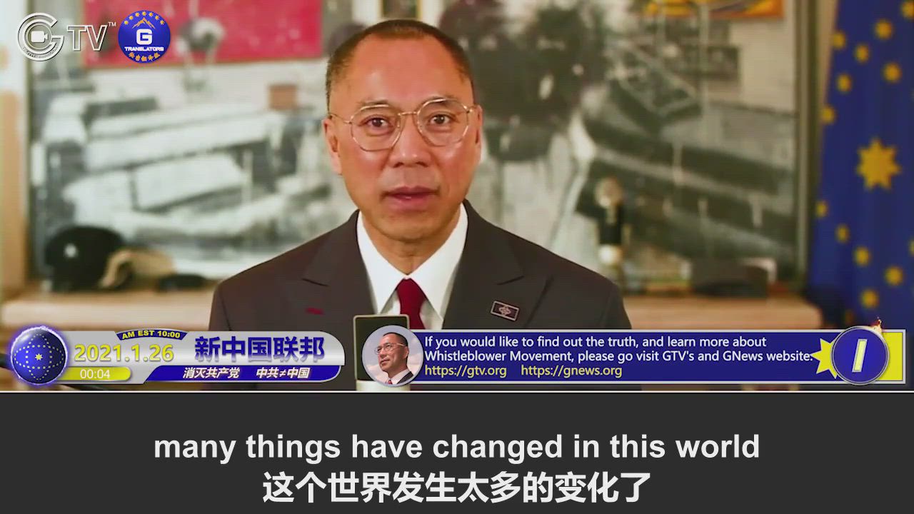 1/26/2021 郭先生直播爆料四周年:没人理解或支持文贵2017年1月26号的这个行动,但这是我正确的选择,是我必须走的路;文贵6年前就开始真正地和共产党PK了。 1/26/2021 The 4th Anniversary of Miles Guo’s Whistleblowing: No one supports me or understands the action I took on January 26th, 2017. This is the right choice I made and the path I have to take. It was 6 years ago that I really started to fight the CCP.