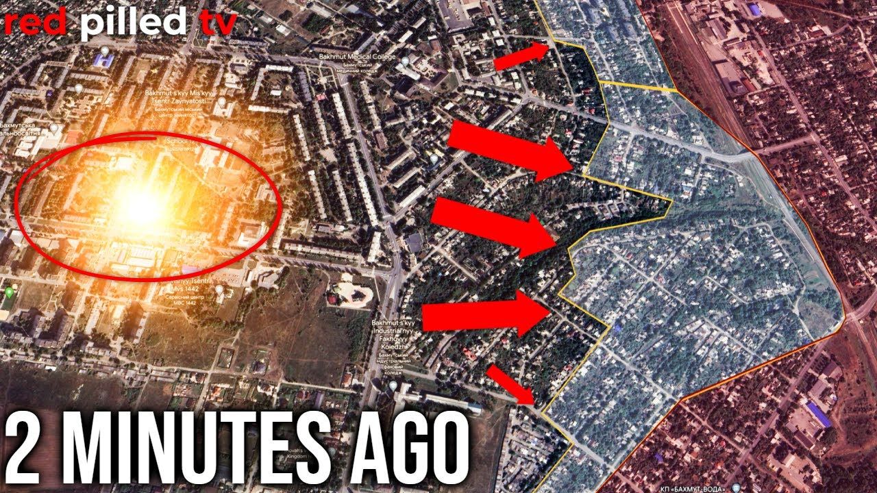 BREAKING Ukraine Update: IT'S ALL OVER, TRAPPED By Russian Forces! | BAKHMUT ENDGAME | Exclusive The 24th April 2023 Frontline Update for the Russo-Ukrainian War. We got a few updates to talk about today, starting in the area of Bakhmut. We have reports coming in, kind of wild and random reports, if you will, coming in about a Russian offensive or a Wagner offensive basically on all fronts of the town and heavy fighting around the entire arc. So starting in the south, we're going to talk about gains that we were able to map out. So there is reports of fighting not only near this school here, this is actually the school number 5 and it was reported to have been captured, but there's also reports of fighting all the way up to the bus station, which I believe is this area right here, and then the central market, which is this area right here. There seems to be some speculation that the central market is actually being attacked from the east, from coming across the river. So it's tough to really map out where the front lines are here, but one thing that we have heard is that Mariupolska Street, and real quick let me turn on all the labels here, Mariupolska Street, which is running down through here, the claim is that the entire street has now been captured by Wagner, so they definitely mean this top half of the street here going up to the school number 5. As far as the bottom half here, I'm not sure, we're going to go ahead and mark it, but with kind of a question mark. So just to show you guys what the reported gains have been in the area, you're looking at something more or less like this around the school. And then to the south of here, if this information holds true, and this area has now been captured, then you're looking at a new front line, something like this in the south. So moving down a large chunk of territory would be in Russian hands.