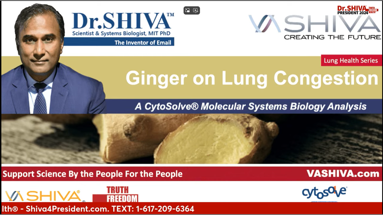 Dr.SHIVA Ayyadurai, MIT PhD in Biological Engineering, the Inventor of Email, provides a CytoSolve® systems biology analysis of the multi-systems effects of the nutrient Ginger on alleviating Lung Congestion. Link to blog post: vashiva.com/dr-shiva-live-ginger-reduces-lung-congestion/
