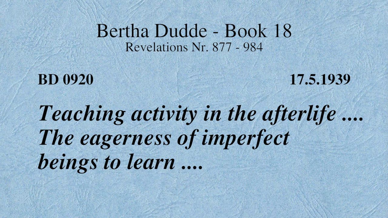 BD 0920 - TEACHING ACTIVITY IN THE AFTERLIFE .... THE EAGERNESS OF IMPERFECT BEINGS TO LEARN ....