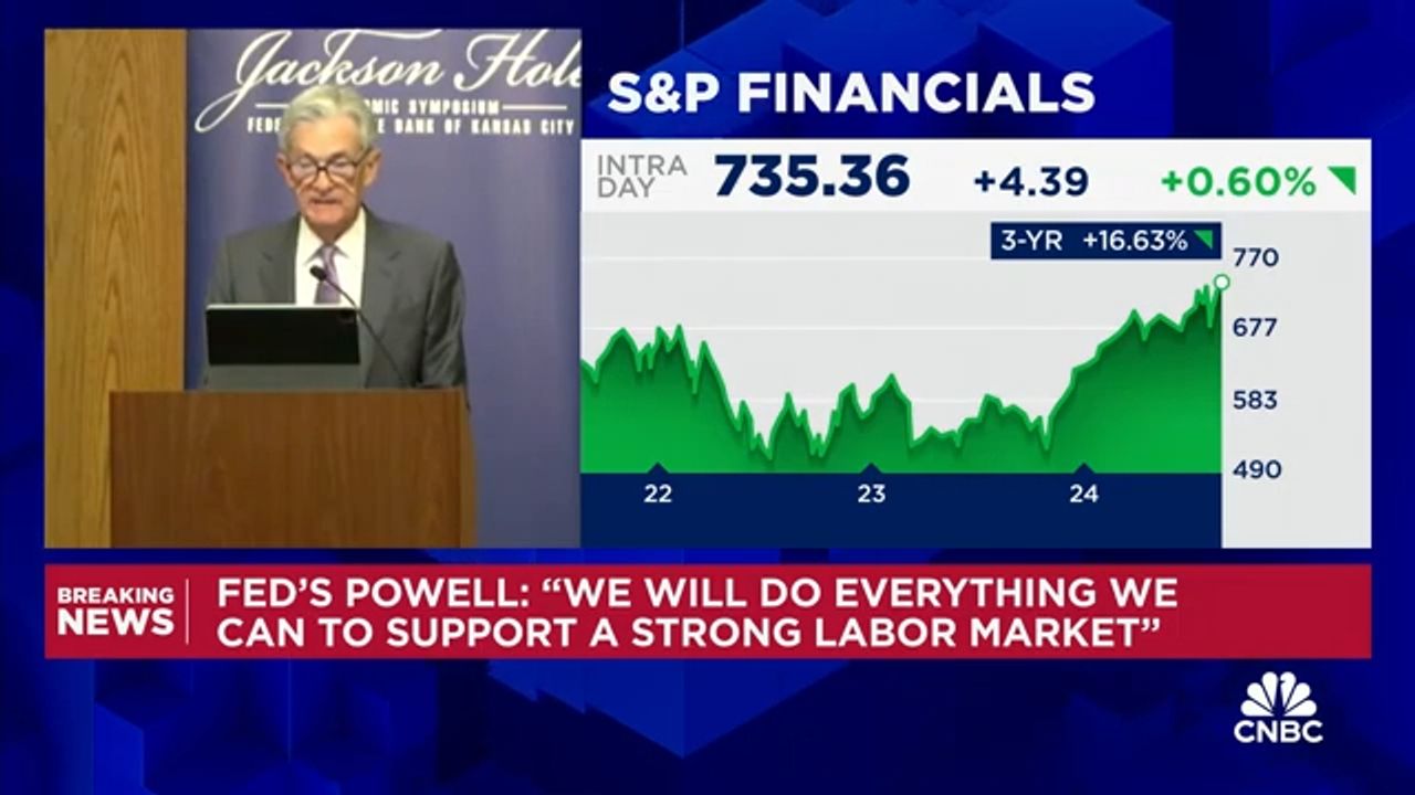 Federal Chair Jerome Powell speaks at the central bank’s annual conclave in Jackson Hole, Wyoming.