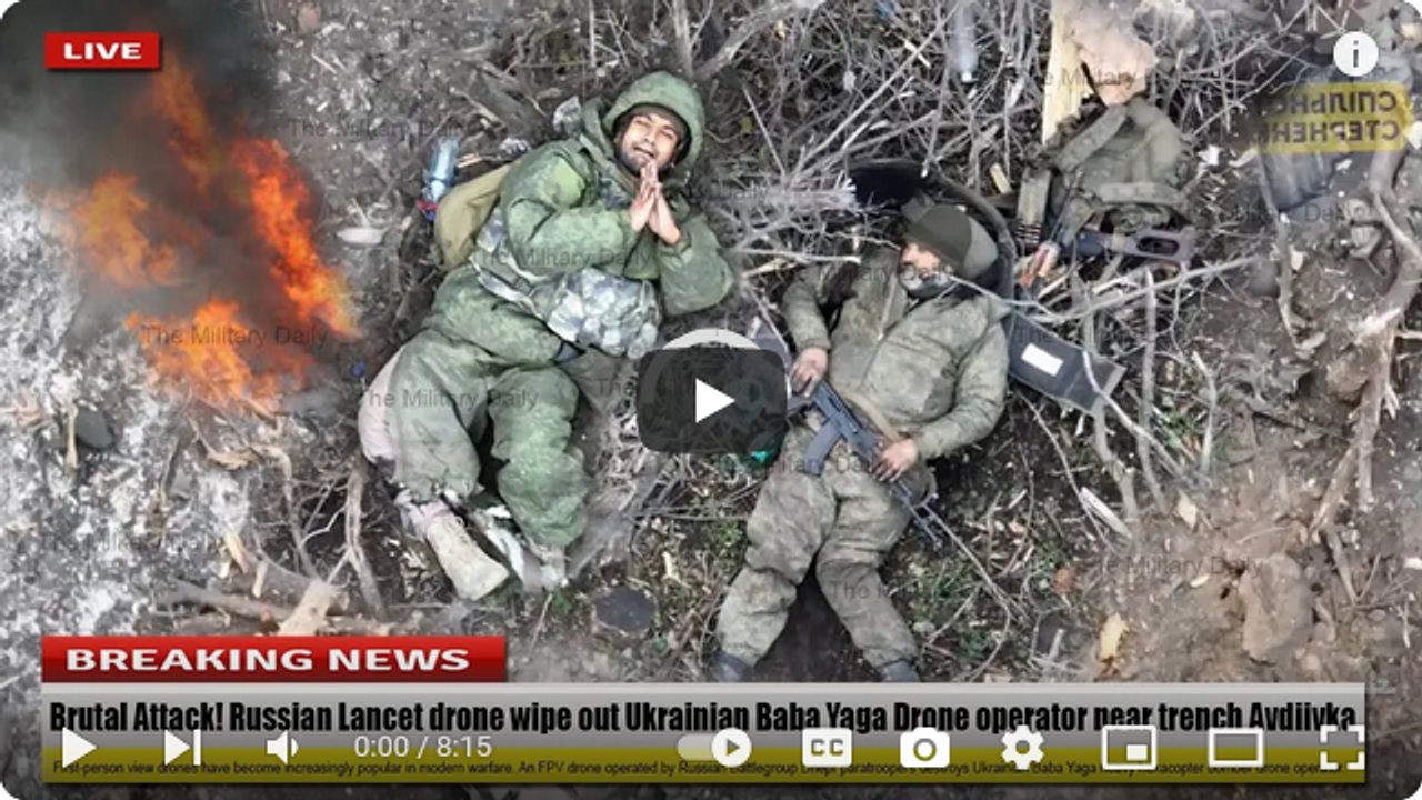 First-person view drones have become increasingly popular in modern warfare. An FPV drone operated by Russian Battlegroup Dnepr paratroopers destroys Ukrainian Baba Yaga heavy hexacopter bomber drone operator in an air battle over the Kherson region.